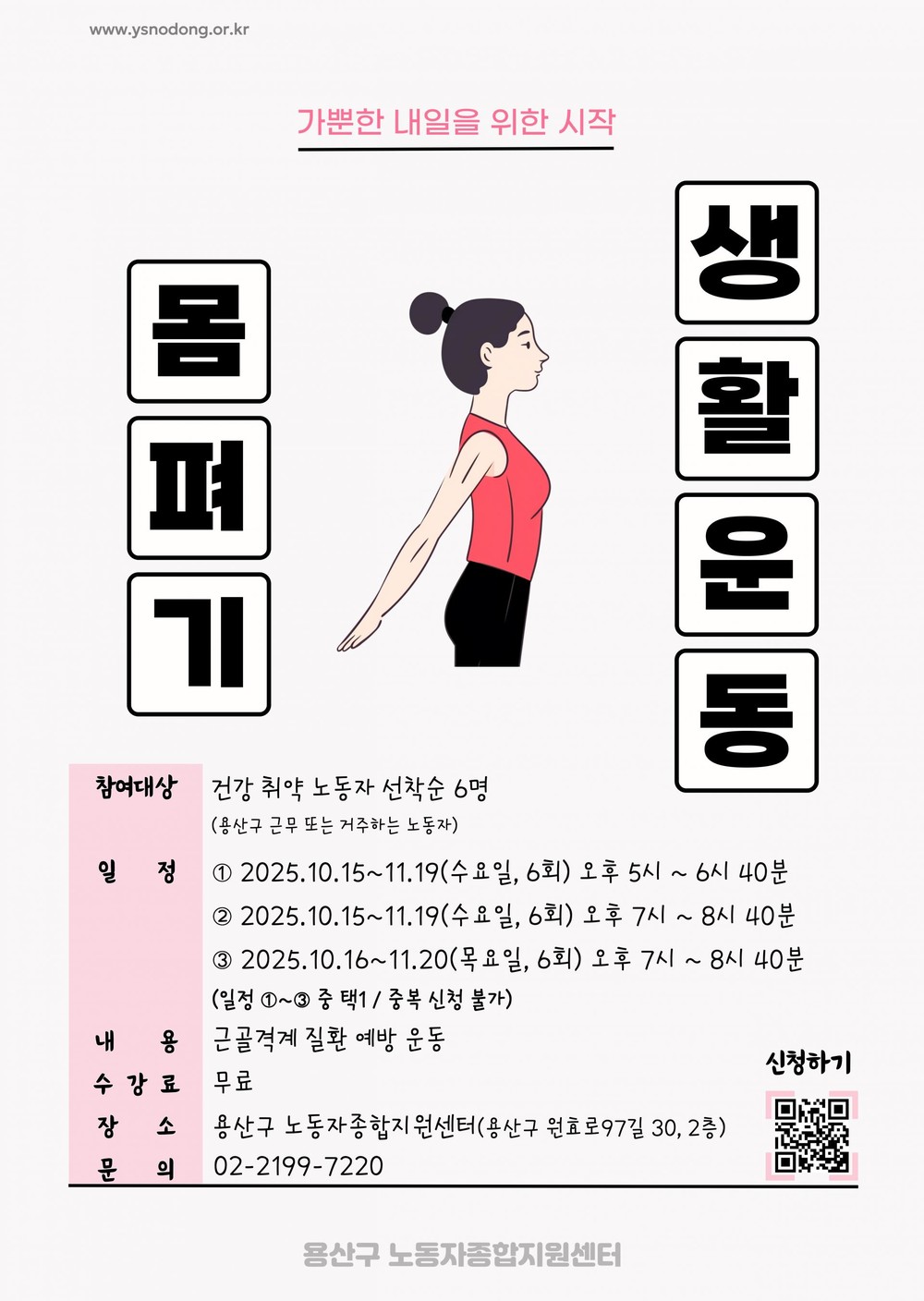 용산구 노동자종합지원센터 '몸펴기 생활운동' 참여자 모집(2025년 10월 시작)